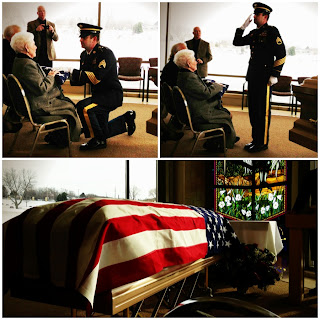 As the family members had began to assemble over the past two days, we'd submerged ourselves in his life. We all had something of our own we were losing and we shared it with each other: his wife - my grandmother, his children -my aunts and uncles, his grand children - my sister and cousins, his great-grand children - my daughters and nieces and nephews. Around tables, couches, and in pews we'd told stories, dug out old pictures, reminisced on things almost long forgotten... we'd hugged, and we'd cried many tears. We'd seen him in almost everything around us. Somehow, today, we'd all come together for him one last time to lay him to rest. Somehow.
